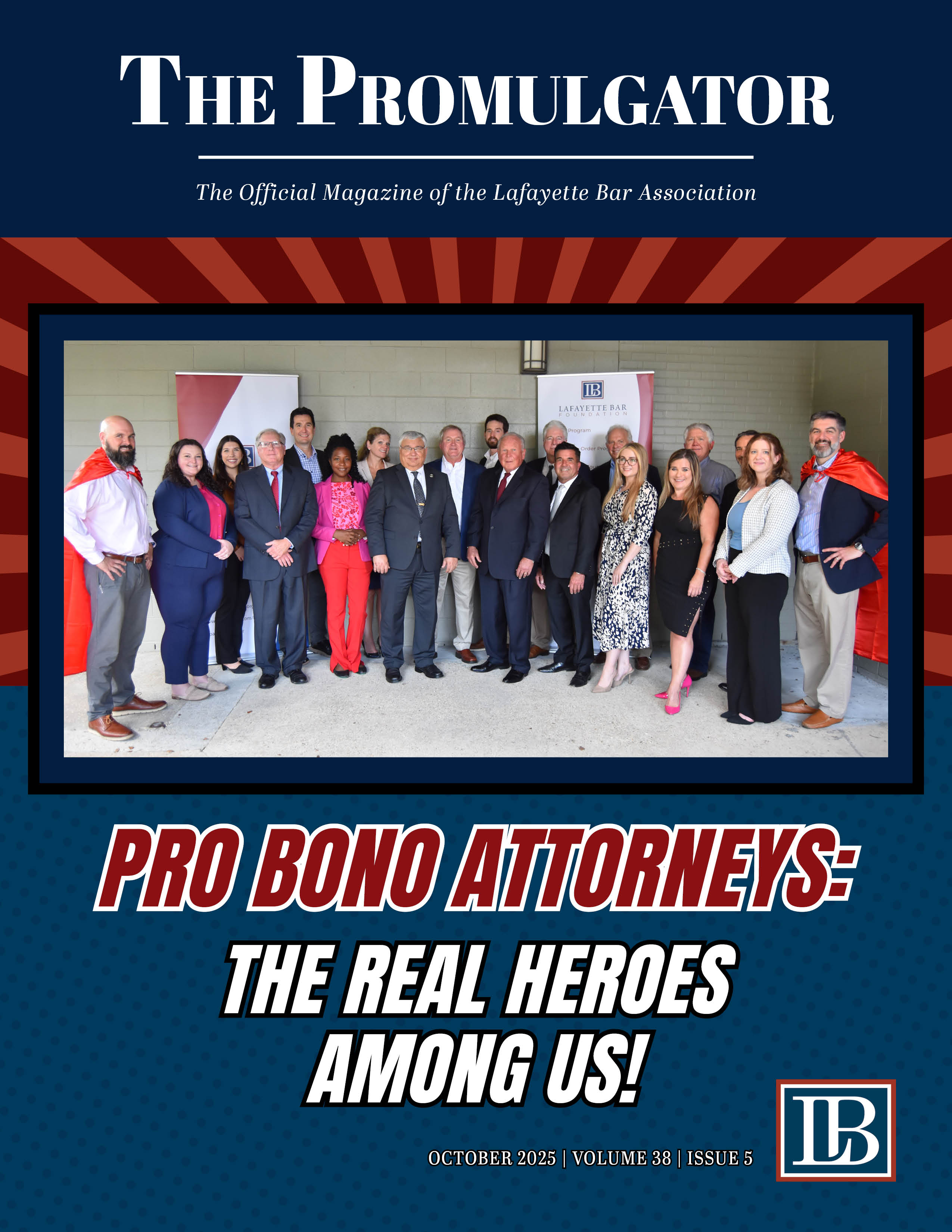 The PromulgatorThe Promulgator is published six times per year by the Lafayette Bar Association. It serves as the premier legal magazine providing substantive and topical information to the legal community. The Promulgator has an audience of over 1000 member attorneys and judiciary (including paralegals, legal secretaries, office managers and staff). Request an advertising packet from LBA Marketing or email [email protected] 337-446-2203.